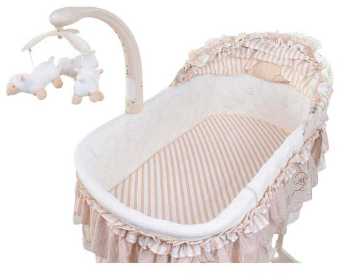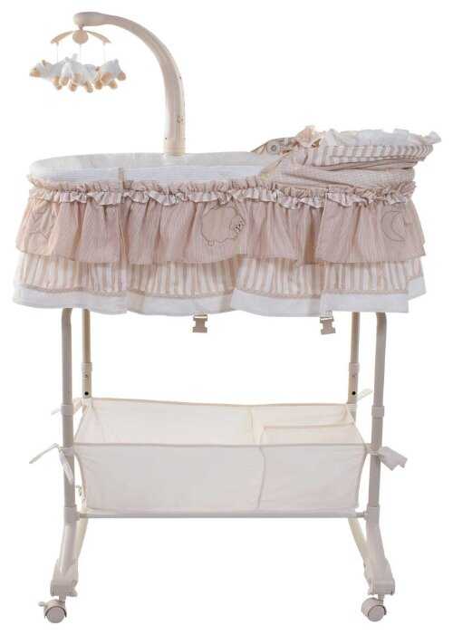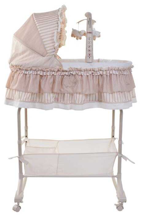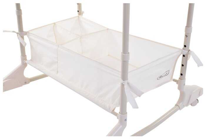 - Вместительная корзина в нижней части колыбели удобна для хранения подгузников, салфеток и игрушек.