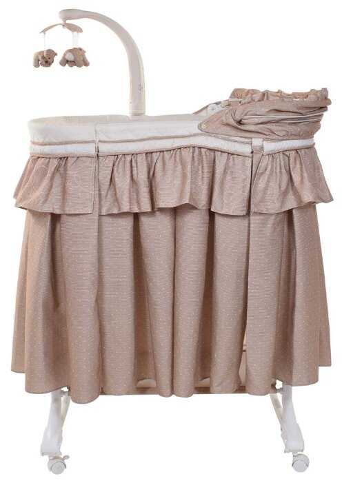 Отличная колыбелька. Привлекательная, добротная, аккуратная. Корзина под вещи прикрыта тканевым чехлом.