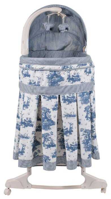 Колыбелька смотрится благородно, добротно, даже богато. Изготовление качественное, хорошо продумано, до мелочей. Например, чтобы не снимать постоянно при необходимости мобиль, его достаточно просто повернуть в сторону. Капюшон объёмный, даёт отличную защиту от солнца. Ещё один его плюс - почти бесшумный. Это важно. Тканевый чехол легко снимается, быстро просыхает. Нижняя корзина - необходимость безусловная.