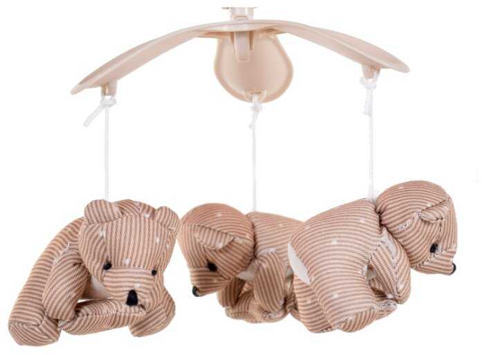 - Мобиль с 3D-игрушками (мишки) и 5 мелодиями (природа, классика).