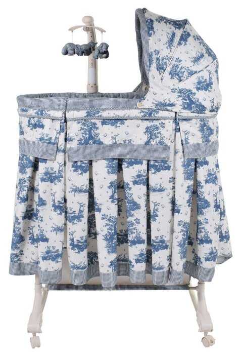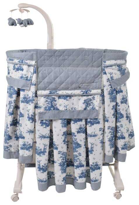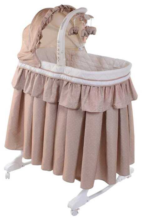 - + все в комплекте для сборки (детали на месте), ткань от отделки качественная (плотная прям), выглядит здорово, даже завязки на корзине в цвет самой колыбели