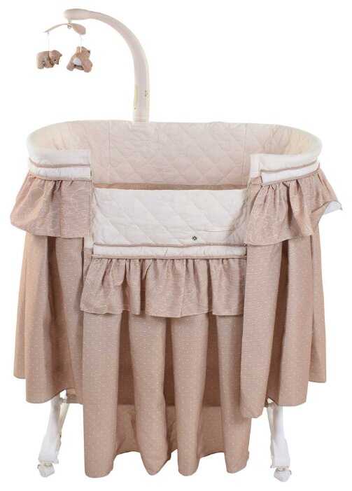 - Снятый бортик и регулировка высоты позволяют пристегнуть колыбель к родительской кровати.