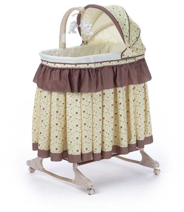- + красивая отделка снаружи и мягкая внутри, на полозьях удобно укачивать