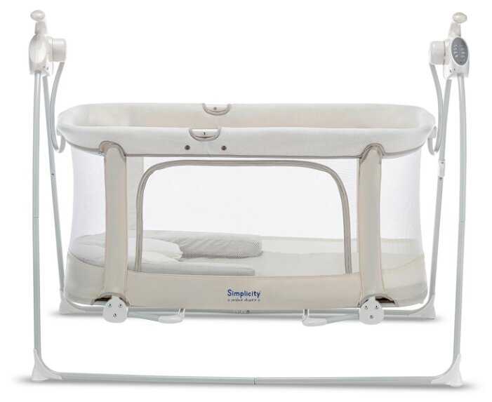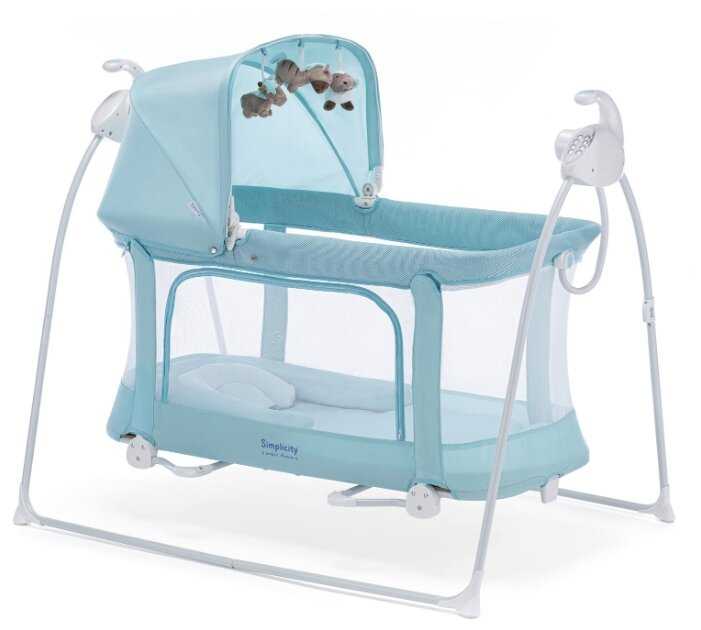 Переживала что будет укачивать шумно, а зря, укачивает совсем без звука, а сетка лучше ткани и вентиляция проходит и присматривать так проще, малыш всегда на виду, ложе кстати просторное)