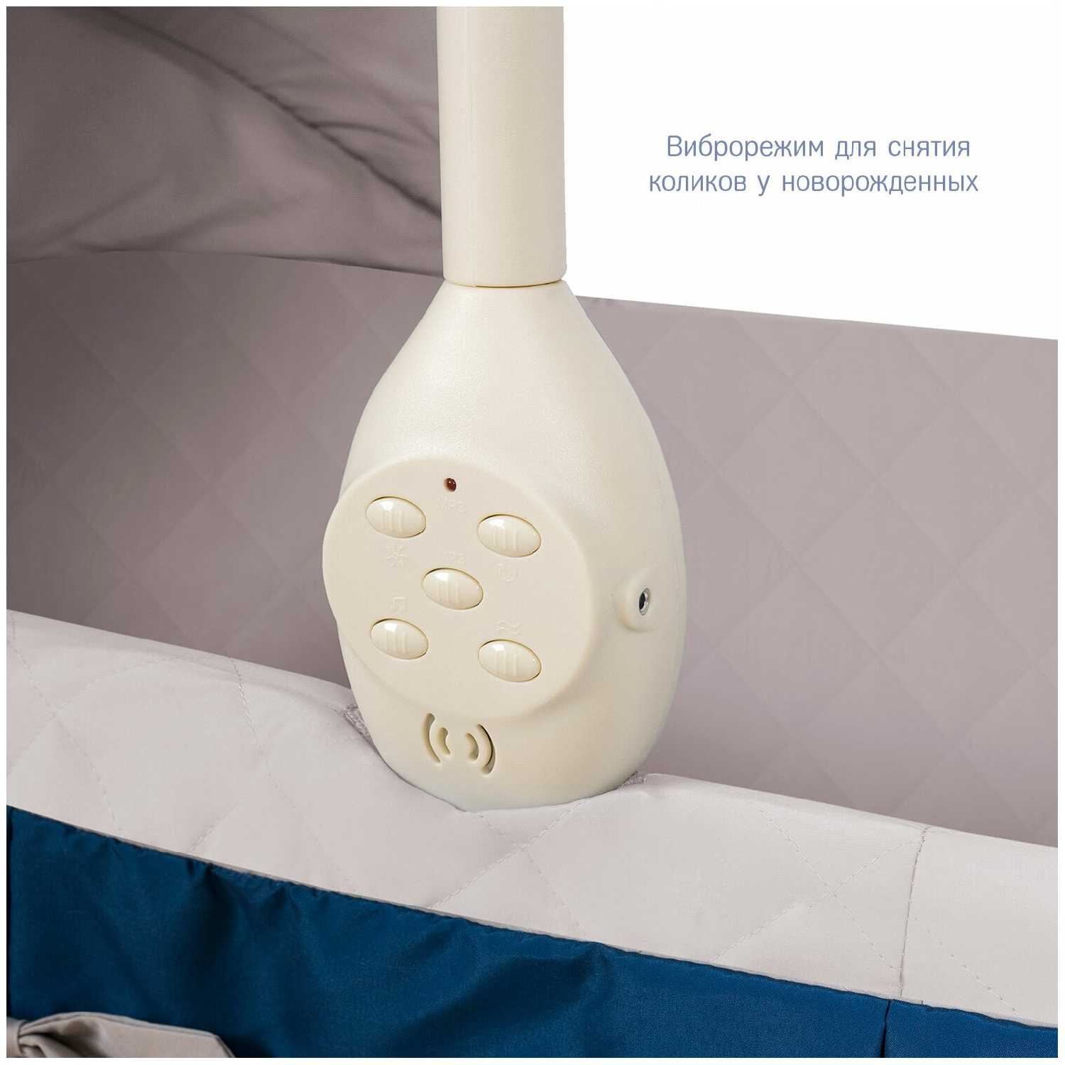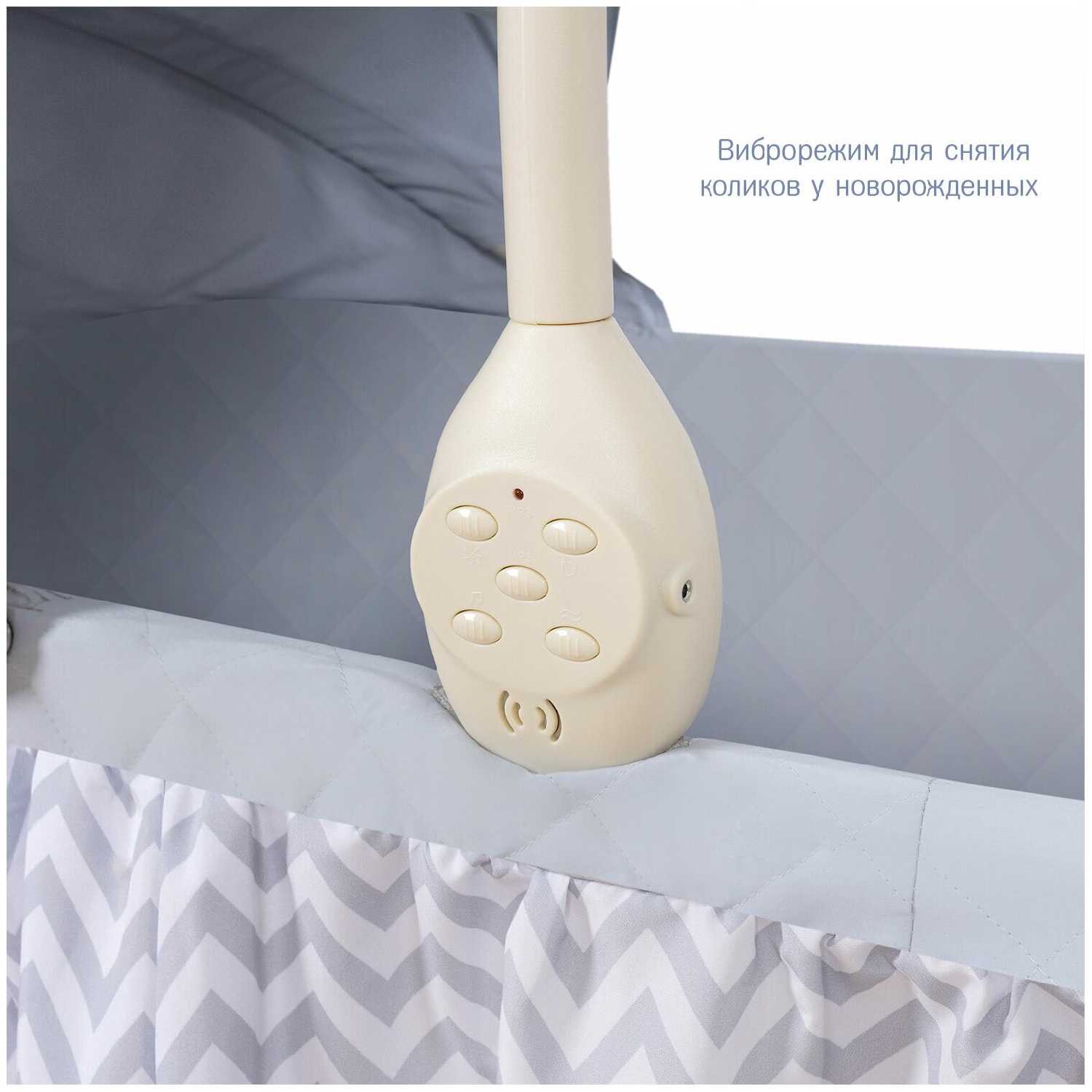 - Встроенный мотор обеспечивает три режима вибрации, которые помогают успокоить ребенка при коликах.