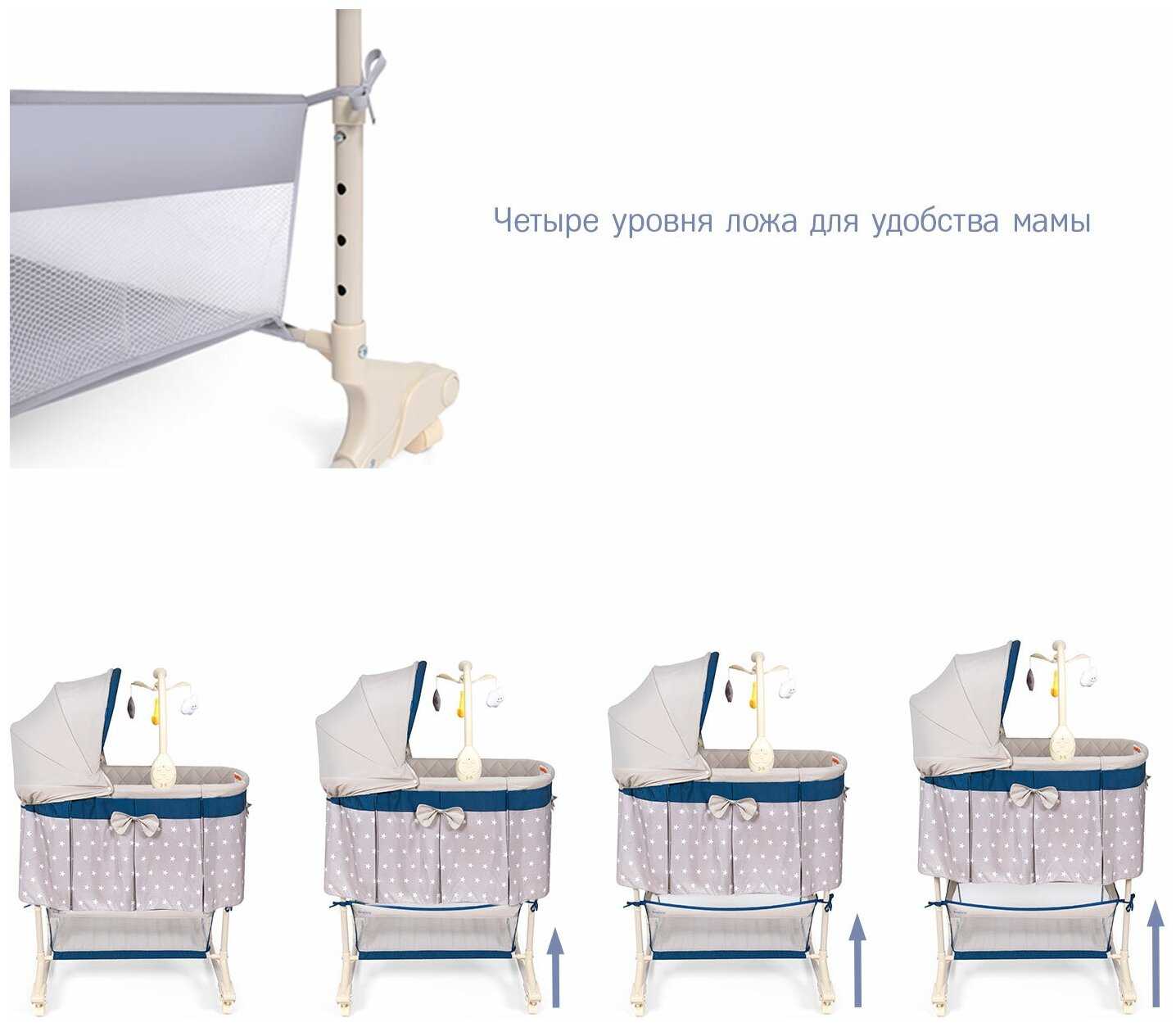 - Высота ложа регулируется (4 уровня: 35-55 см), что обеспечивает эргономичный доступ к ребенку.