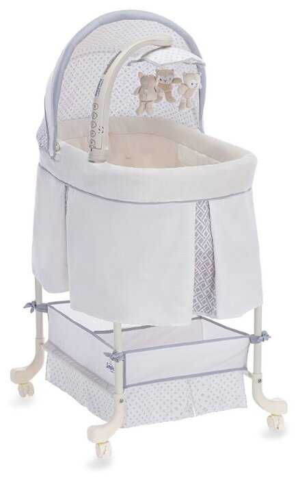 Удобная, функциональная колыбелька с мягким маятником. Все детали из текстиля легко снимаются и стираются. Мобиль с приятной музыкой. Даже не к чему придраться, классная.