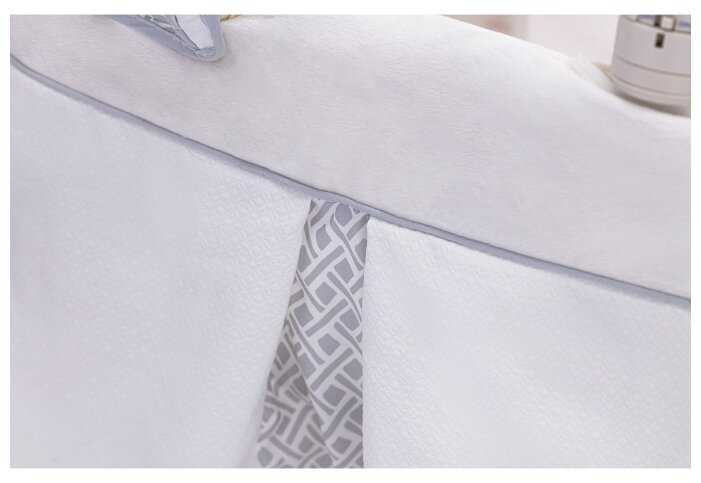 - Колыбель выглядит изящной, воздушной и нарядной, с рельефной тканью, которая придает дорогой вид.