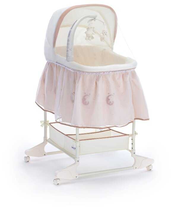 Нежнейшая расцветка с красивым дизайном, рассматривала колыбель только с наличием автоматического укачивания, эта понравилась больше...