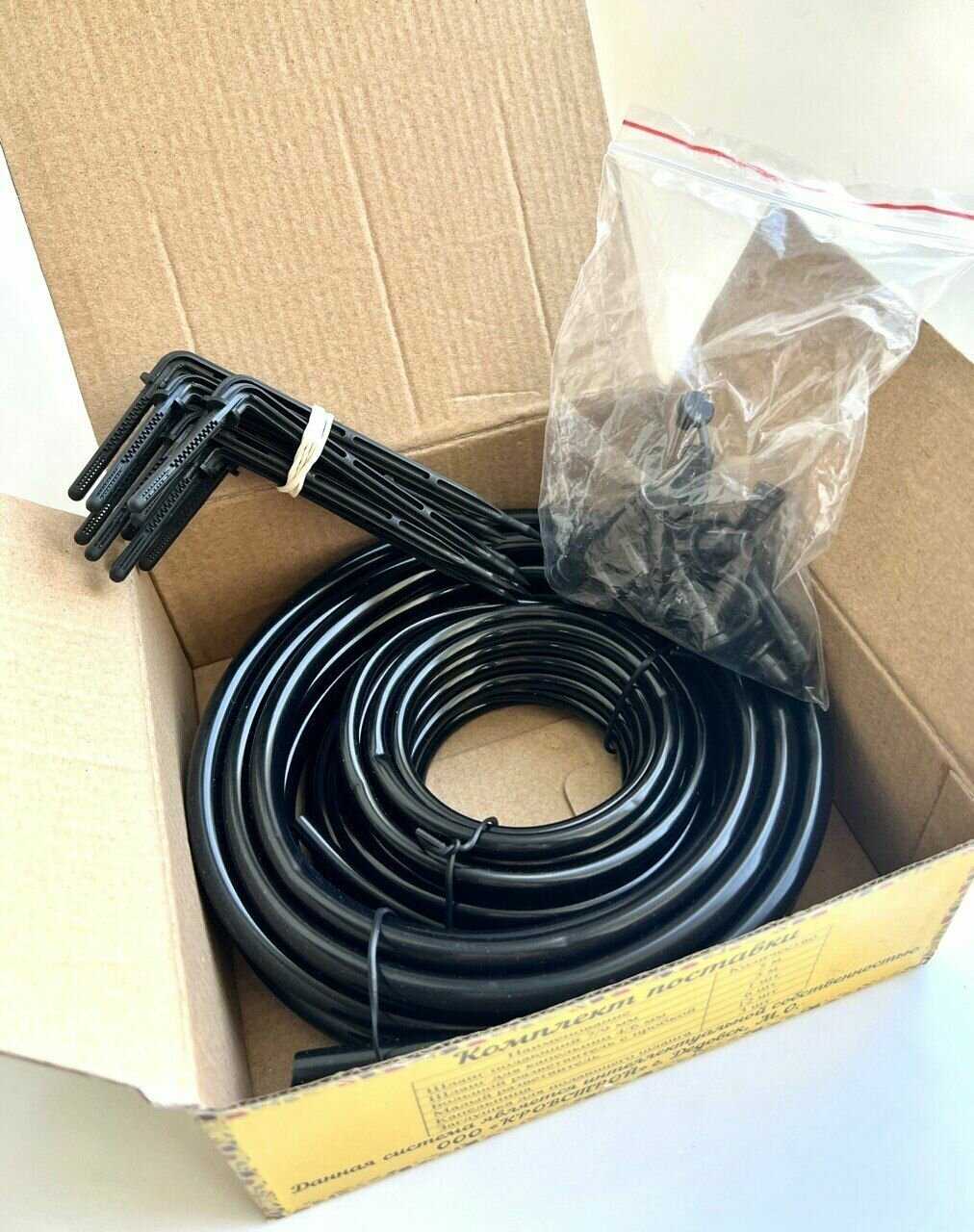 Шланги смотаны аккуратно. Если смущают загибы, они легко исправляются феном. Я клал шланг (или кусочки) в родную коробку и меньше, чем за минуту он размягчается. Если нужно, для отводов капениц или основного шланга можно придать нужный изгиб.