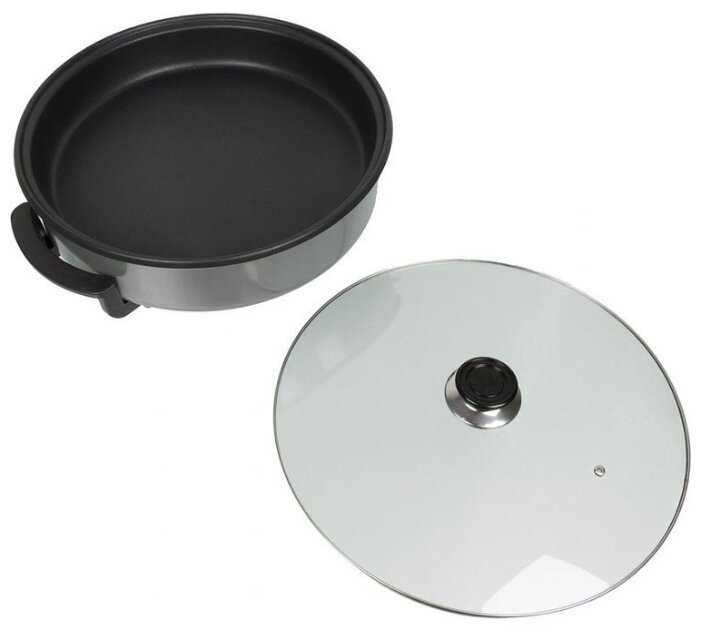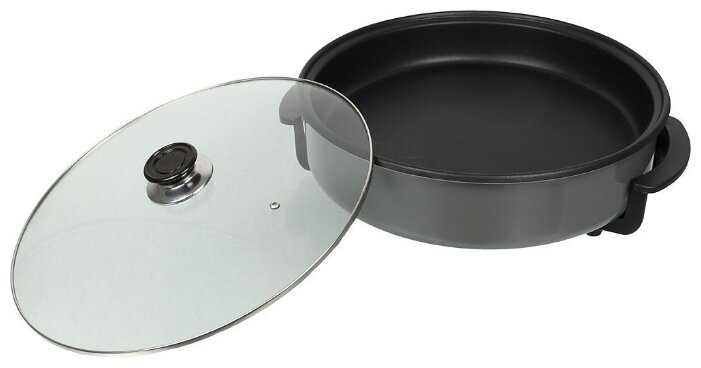 - + достойный диаметр в 40 см, антипригарное покрытие, работает везде, где есть электричество, цена была небольшой
