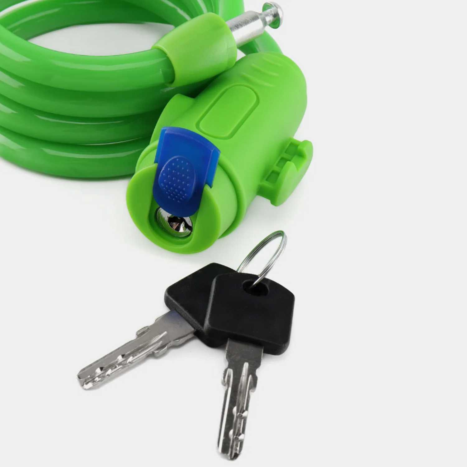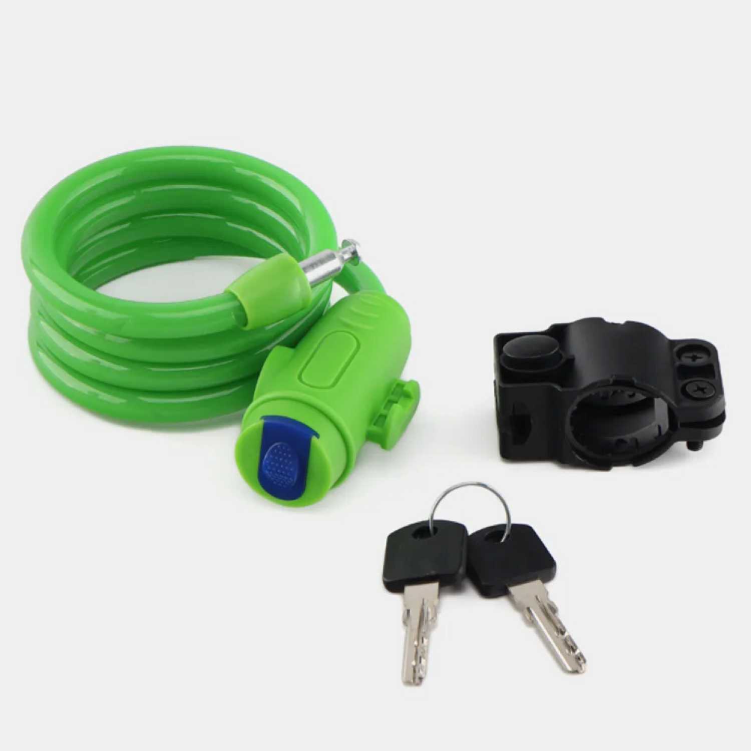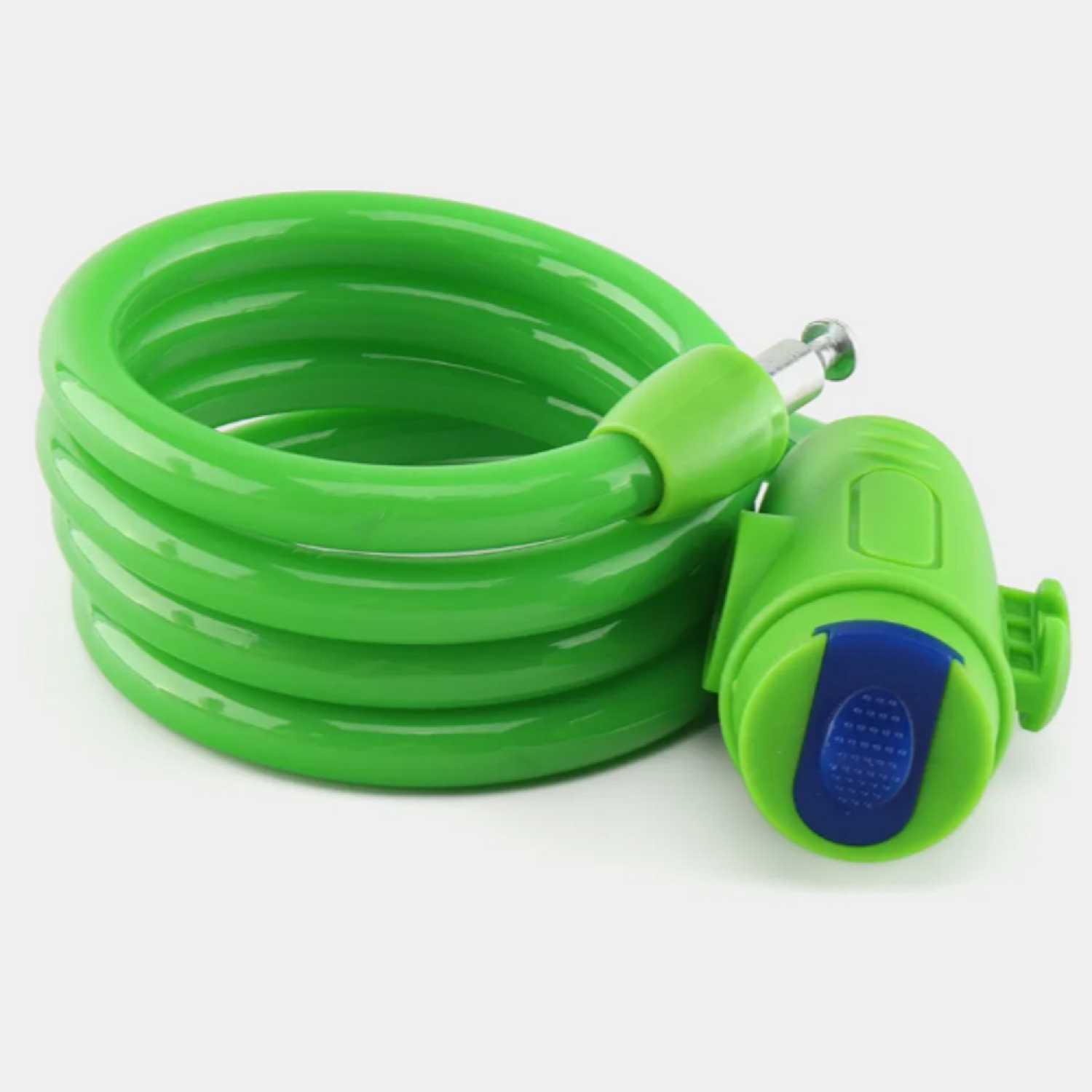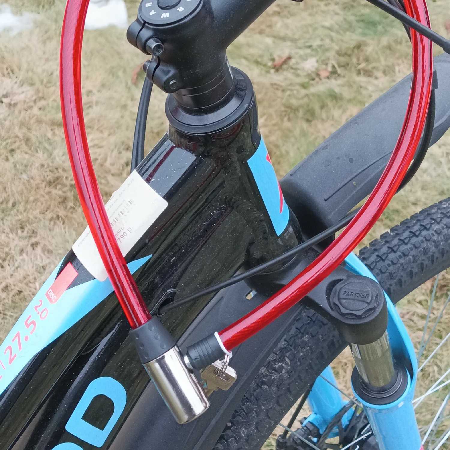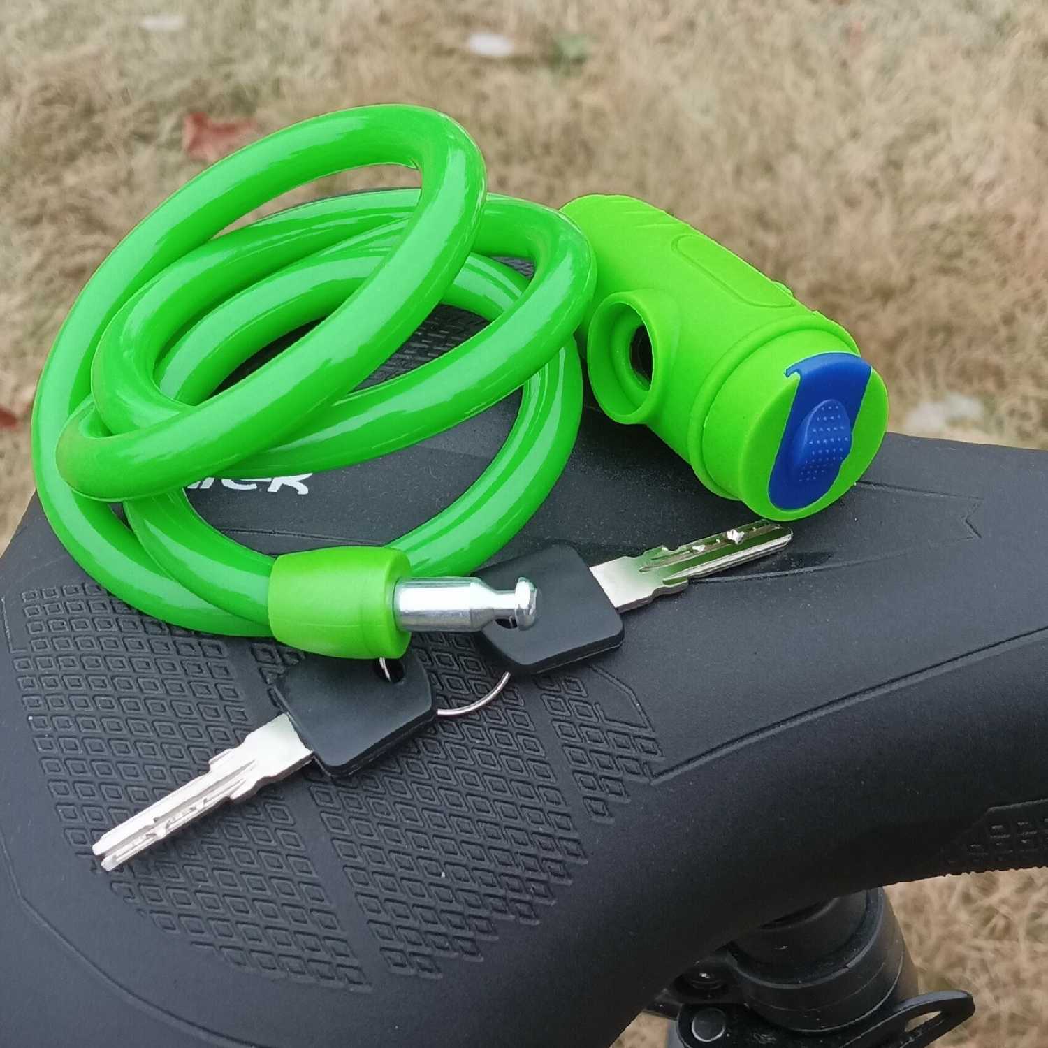 - Яркая расцветка троса и замка выполняет предупреждающую функцию, сигнализируя о наличии защиты и потенциально отпугивая злоумышленников.