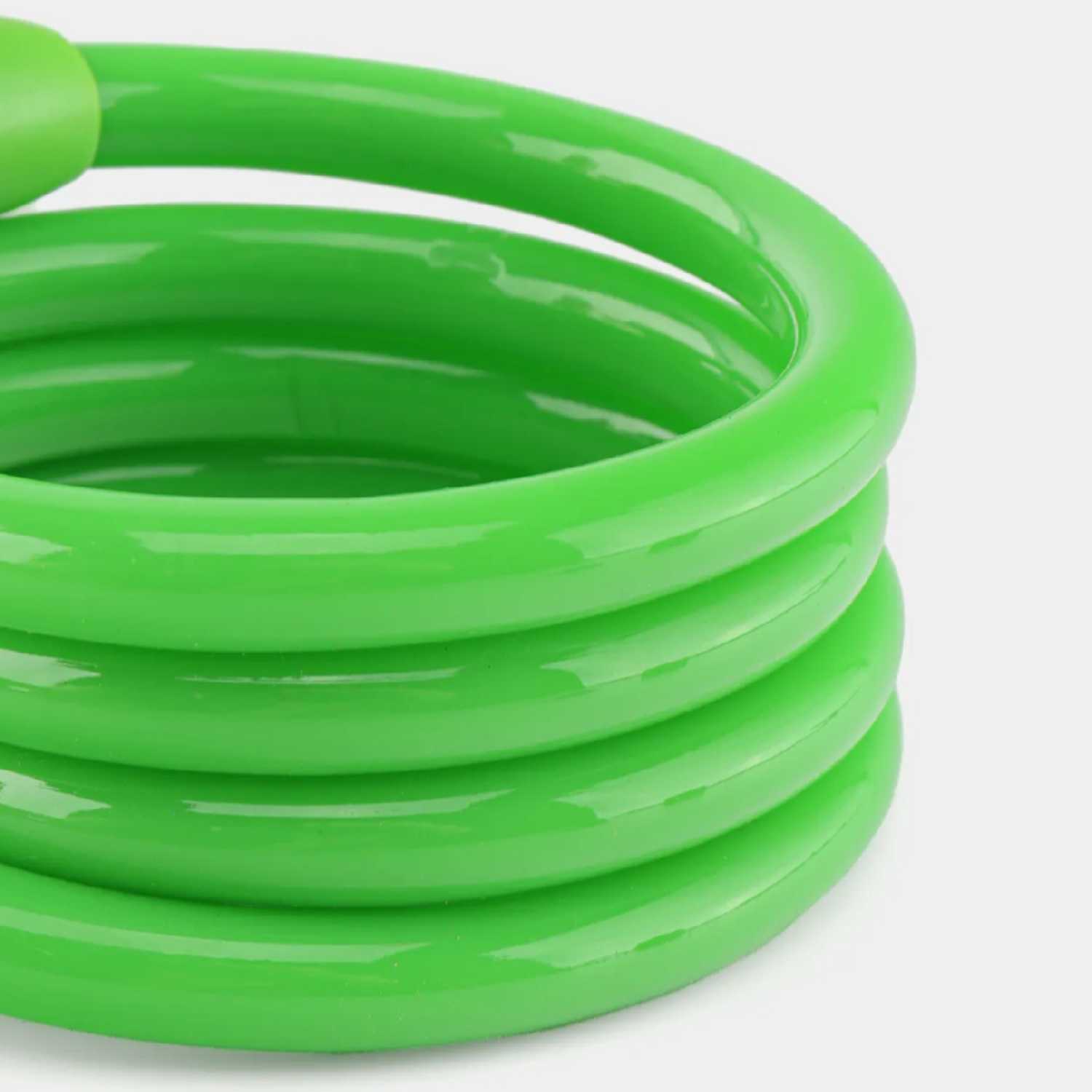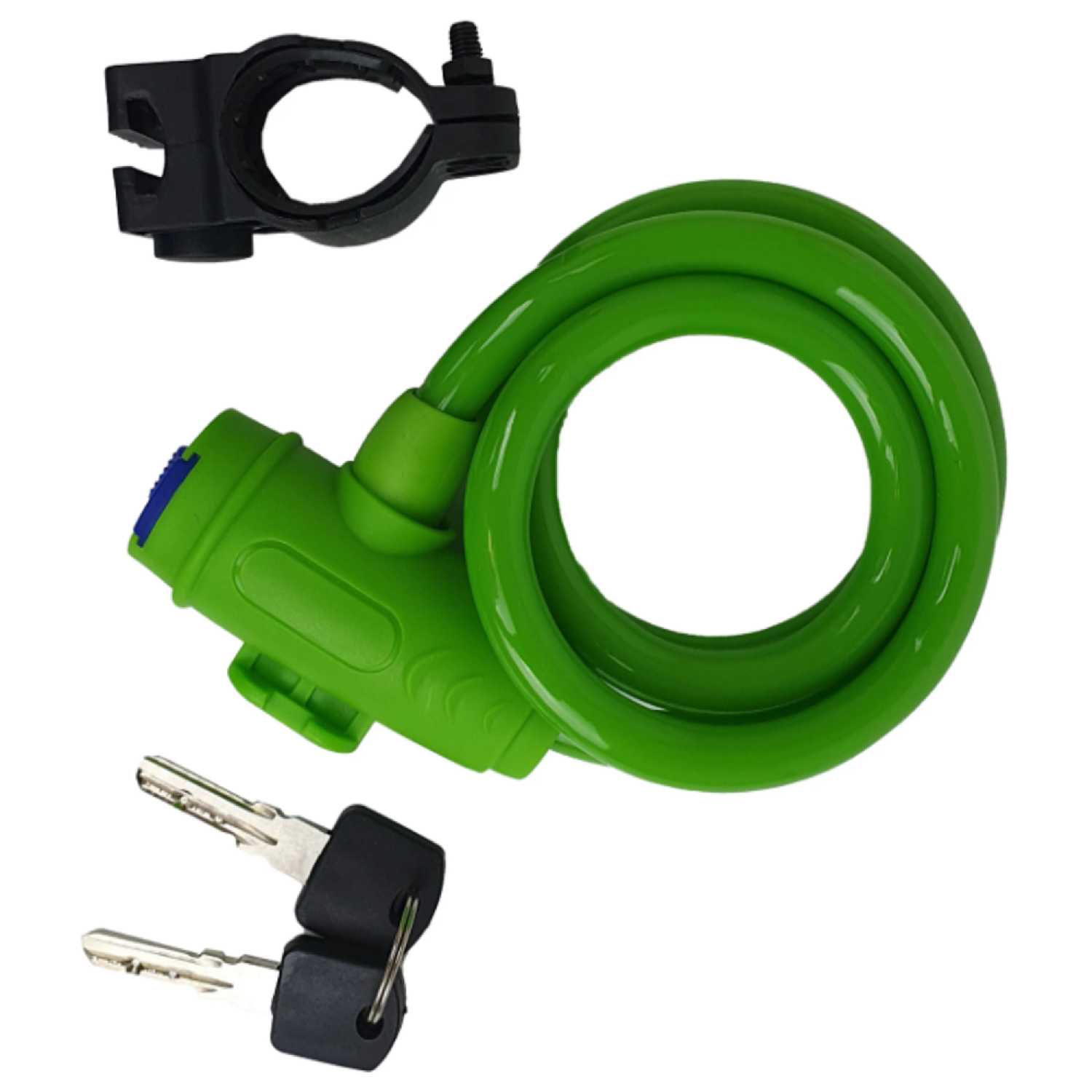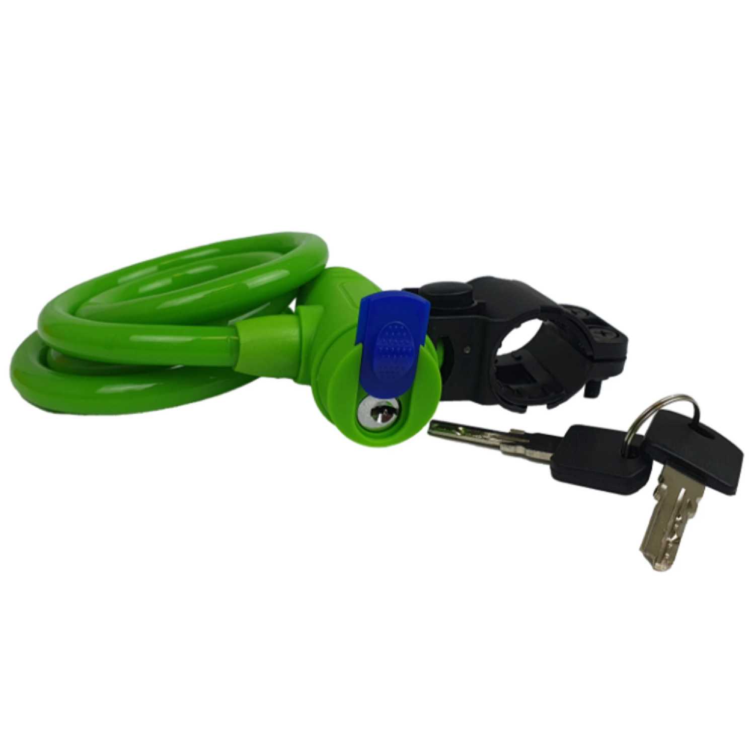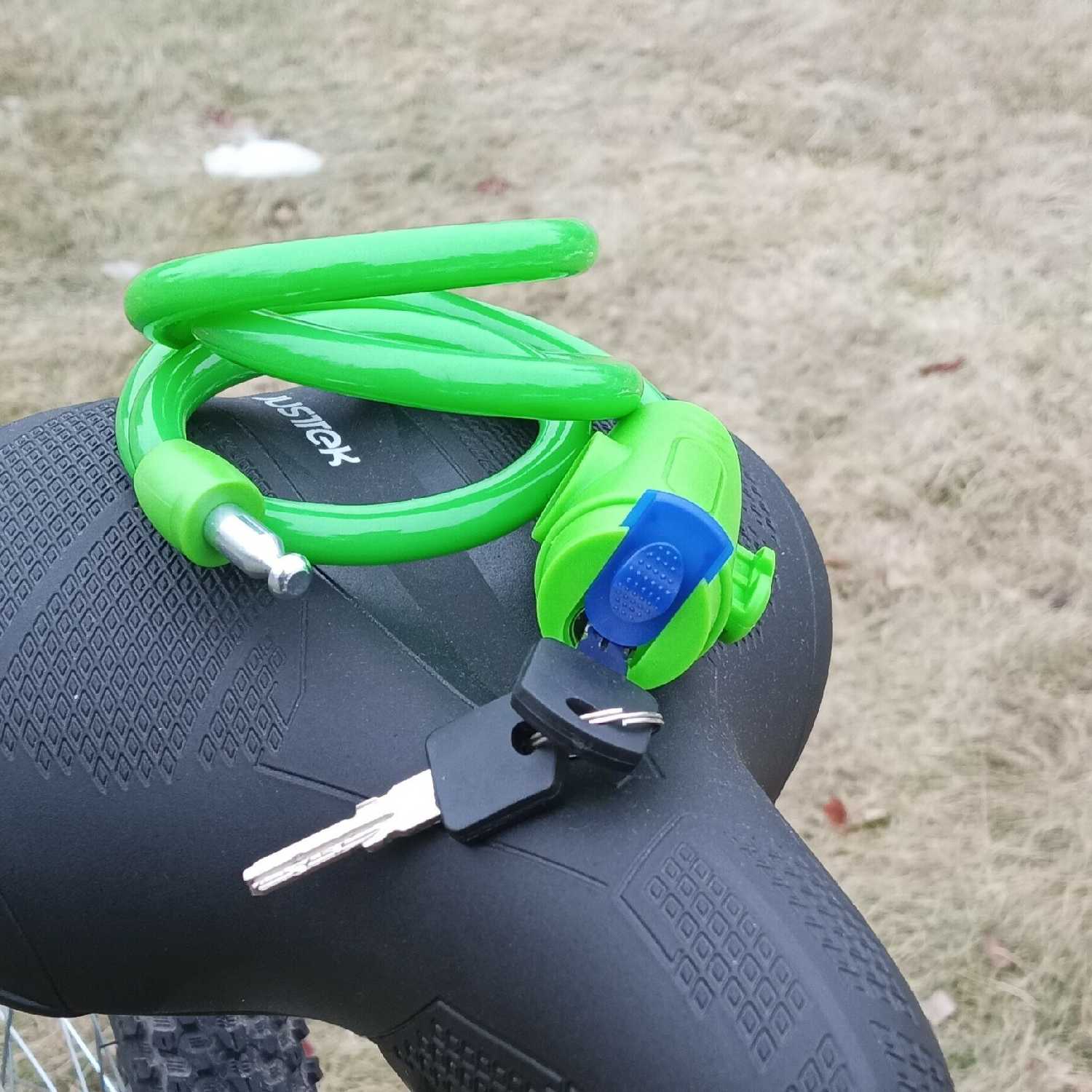 - Яркая расцветка троса и замка выполняет предупреждающую функцию, сигнализируя о наличии защиты и потенциально отпугивая злоумышленников.