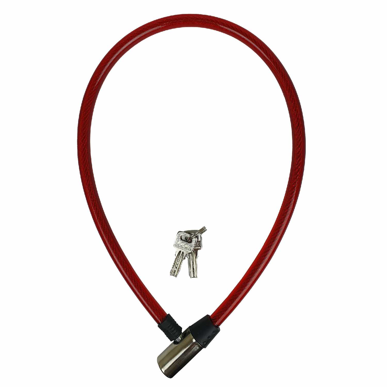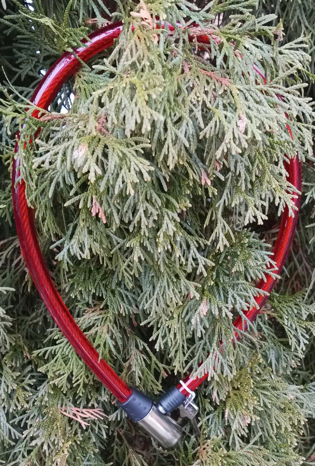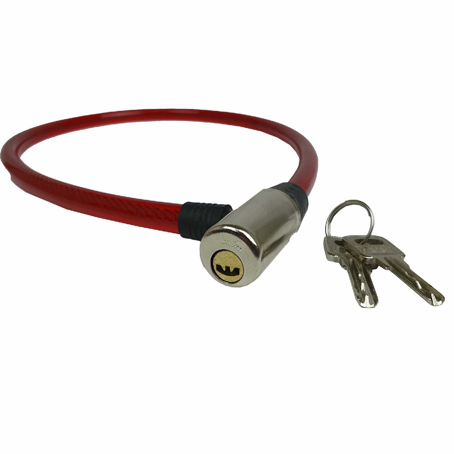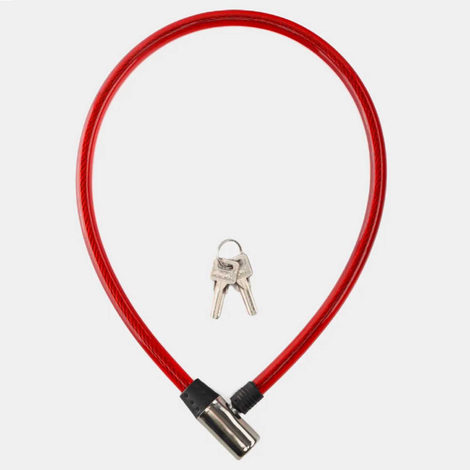 Дополнительная информация : | Замок велосипедный с двумя ключами, красный, длина троса 70 см., диаметр с оплеткой - 11 мм |