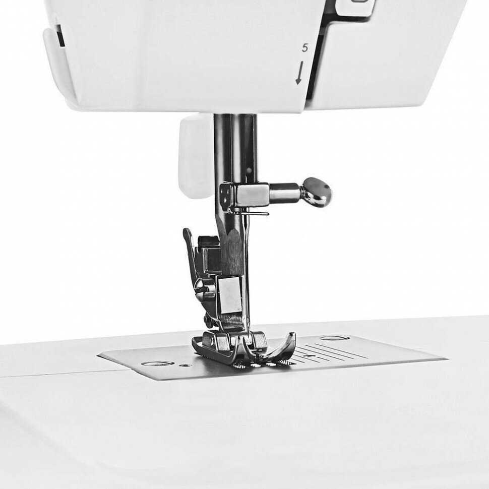 Компактные габариты и вес (с транспортировочной ручкой) позволяют легко переносить устройство и хранить на ограниченном пространстве. Вертикальный челнок и быстросъемные лапки ускоряют замену аксессуаров, а встроенный пенал организует хранение игл и ниток. Регулировка силы прижима ткани и скорости шитья педалью обеспечивает контроль над процессом. Единственный нюанс — низкий подъем лапки усложняет работу с многослойными материалами. -