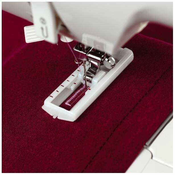 Проста в использовании.Строчек достаточное количество,которые необходимы для прямострочной машины. Машина берет и толстые и тонкие ткани одинаково хорошо.