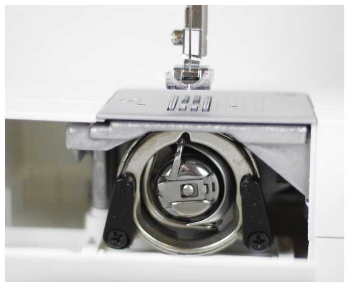 - Регулировочный винт расположен под шпульным колпачком, что требует полного демонтажа для корректировки.