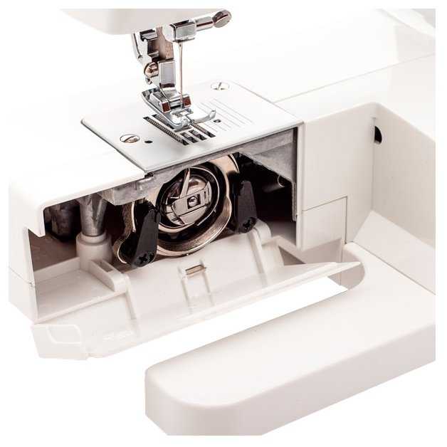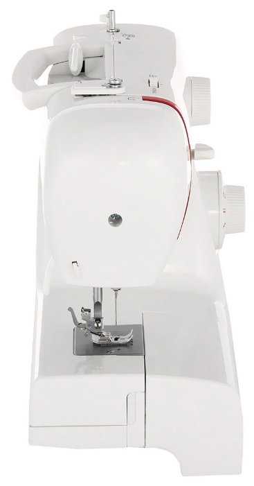 кофту тоже не испортила. Удобная ручка для переноски, дополнительные лапки и шпульки удобно хранить в отделении в основании машинки. Подсветка достаточно яркая, хотя можно было бы и помощнее, но это не критично. Педаль очень "отзывчивая", хорошо регулирует скорость строчки. Есть удобный резак для ниток. Я довольна своим выбором.