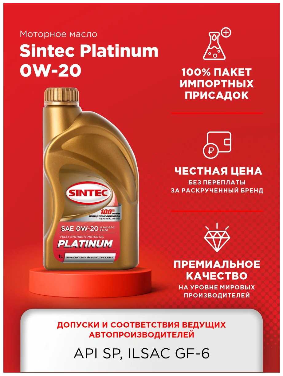 74 отзывов пользователей o SINTEC Platinum SAE 0W-20 ILSAC GF-6 API SP