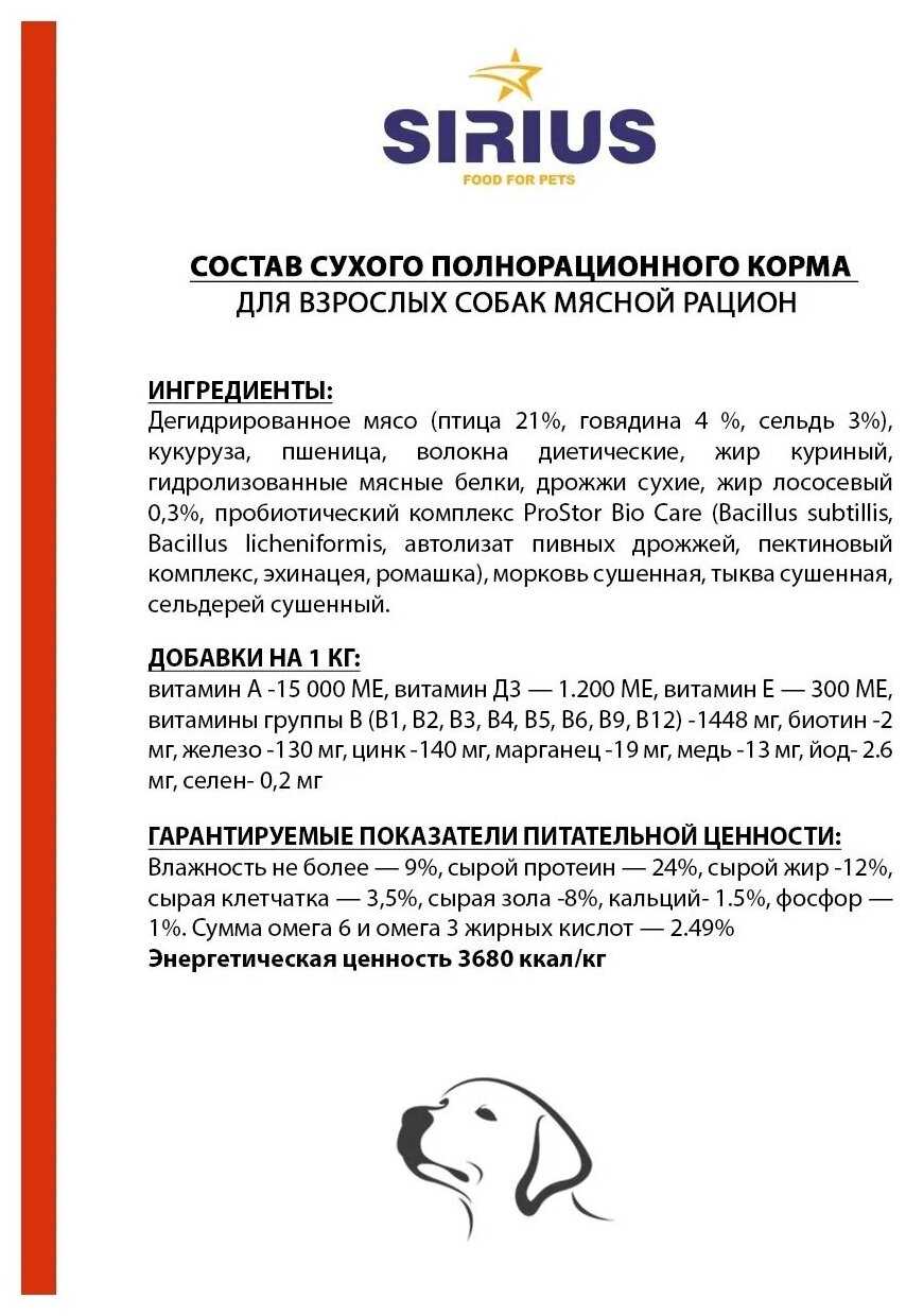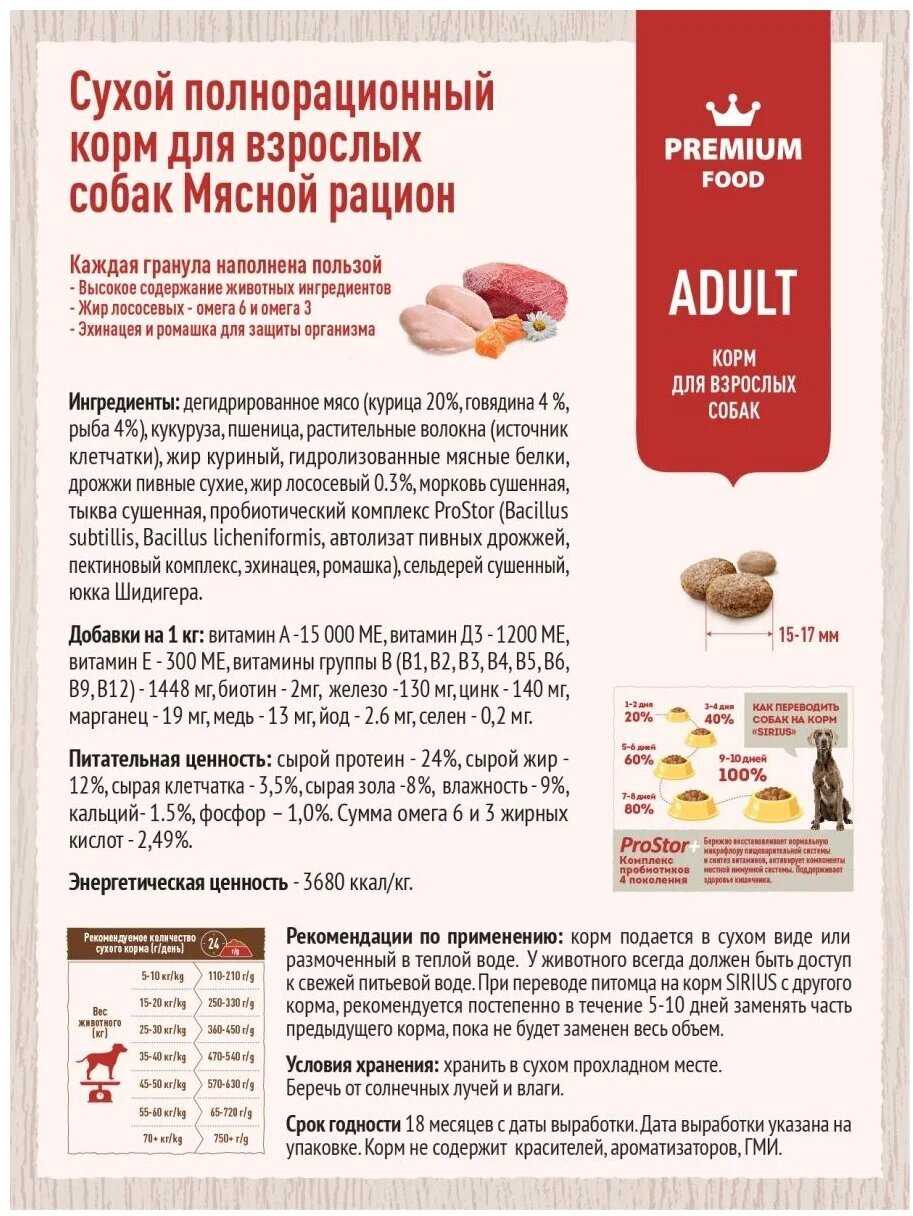 Оптимальные технические параметры и универсальность Размер гранул корма Sirius получает положительную оценку за универсальность. Владелец кане-корсо отмечает, что гранулы идеального размера для крупной породы: собака не давится, не глотает их целиком, а именно разгрызает, что важно для правильного пищеварения. При этом упоминается, что корм подходит и для мелких пород (например, русского спаниеля), а также кошек, что говорит о его адаптивности. Высокая калорийность корма специально выделяется владельцами собак, содержащихся в вольерах, как ключевое преимущество для набора необходимого жирового запаса перед зимой и поддержания энергии в холодный период.