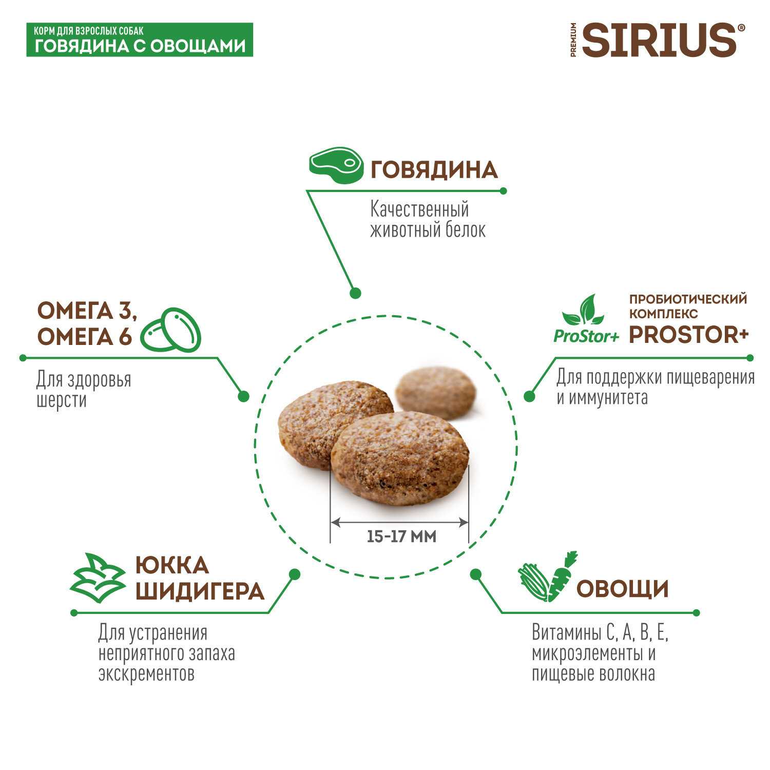 Хороший корм, оптимальный размер гранул. Щенок Сиба Ину кушает с удовольствием. Сейчас щенок уже подрос и будем покупать корм для взрослых собак, но скорее всего так и останемся на Сириусе.