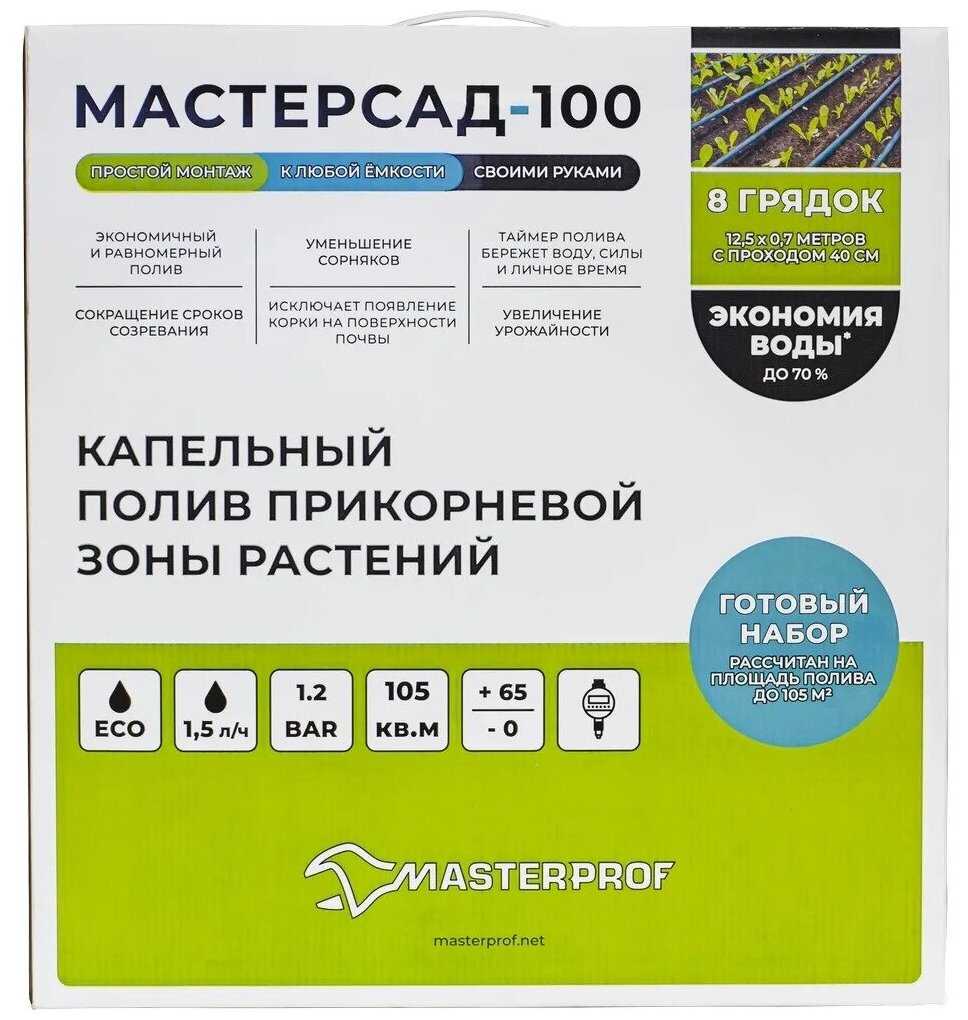 7.5/10 балловМастерПроф Набор капельного полива с электронным таймером "МАСТЕРСАД-100", длина ленты: 100 м, кол-во растений: 250 шт.