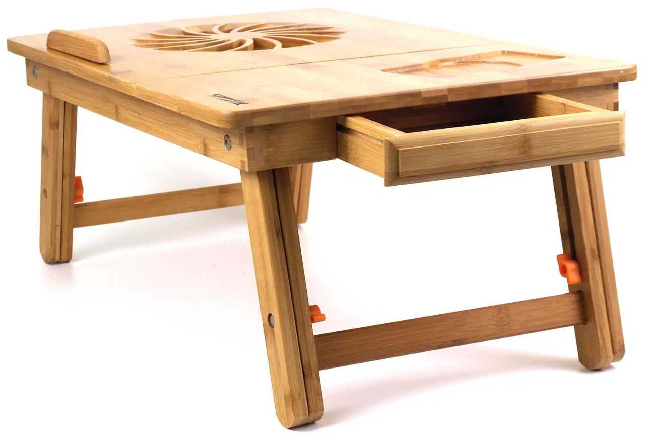 Дополнительная информация : | материал - бамбук, рабочая поверхность для мышки - нерегулируемая с углублением для чашки, габаритные размеры в разложенном виде - 52-57х34х22-33 см, диапазон регулировки высоты столика - от 22 до 33 см, габариты регулируемой по наклону столешницы - 34х37 см, внутренние габариты выдвижного отсека - 105х101х21 мм |