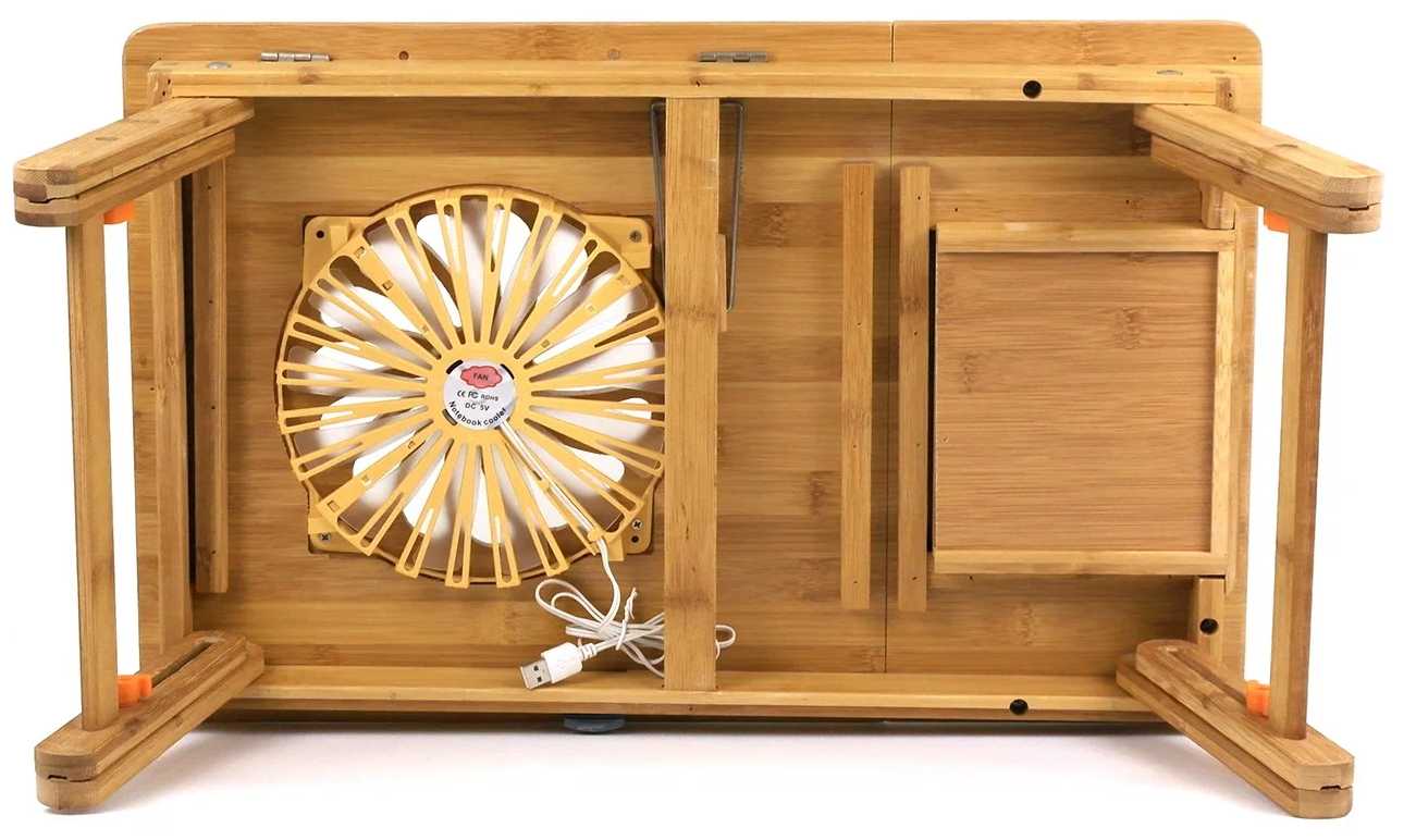 - + Удобный столик, охлаждение работает исправно, ножки регулируются по высоте, красивый, качественный, есть небольшой ящичек, больше не теряю переходнички, удобно, что провод от кулера не болтается, а втягивается как рулетка