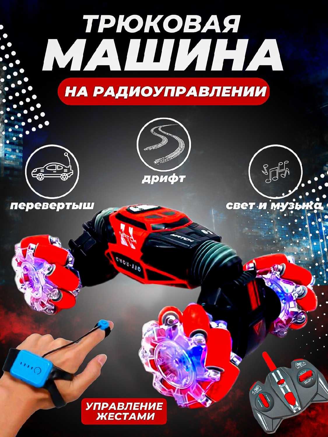 | Комплектация : | Машина, пульт управления, браслет, аккумулятор |