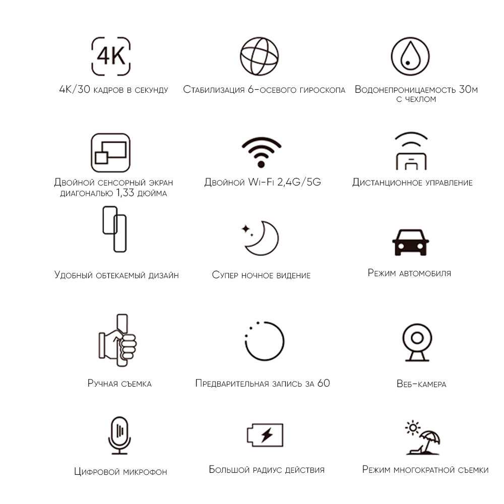 - + От продавца в коробке широкая комплектация. Малютка с большим функционалом и легким меню. Можно установить приложение на телефон и управлять камерой с него, там же просматривать отснятый материал. Докупила дополнительный аккумулятор, который держит заряд очень долго и одновременно является ручкой. Два экрана, есть электронная стабилизация.