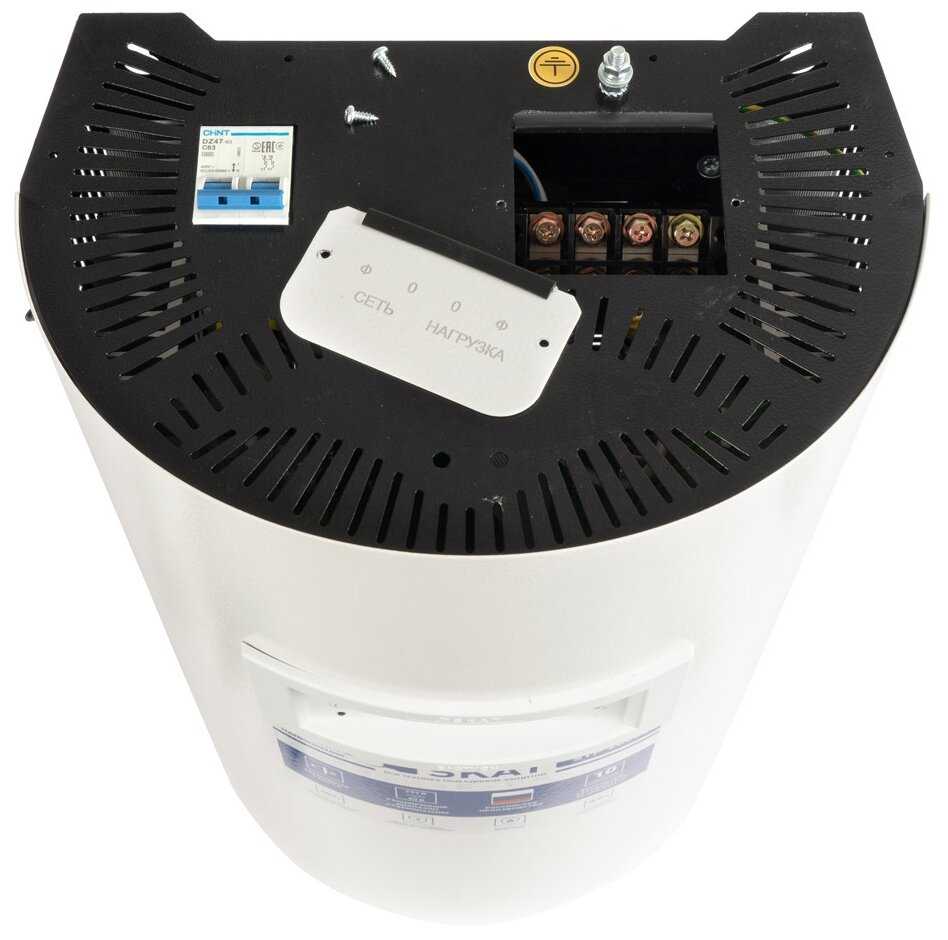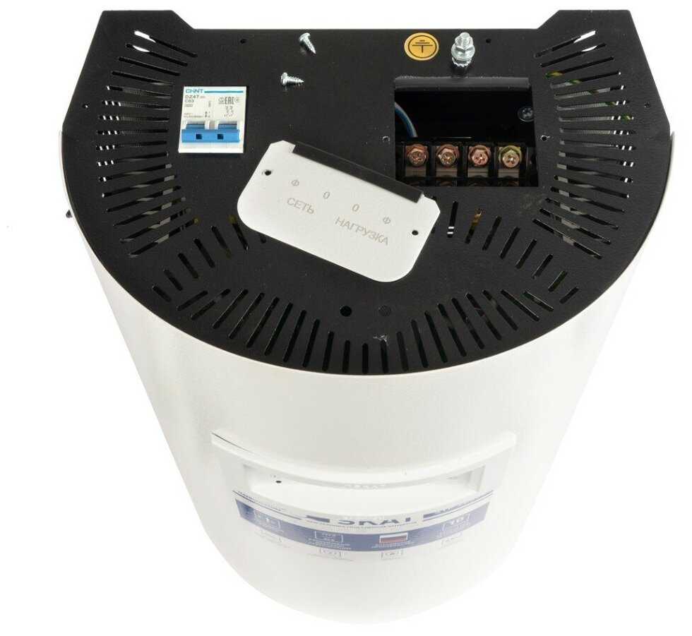 Отличный стабилизатор, питает холодильник, микроволновую печь, стиральную машину и другую технику. Максимальная нагрузка 16 кВт. Есть фильтр импульсных помех, защита от перегрузки. Бесшумный, только при переключении кликает. В доме бывает кратковременно напряжение падает до 150 В, технику бережет. В руках чувствуется добротная вещь, тяжелый, толстый металл. Подойдет для любого интерьера. На дисплей выводится информация о входном и выходном напряжении.