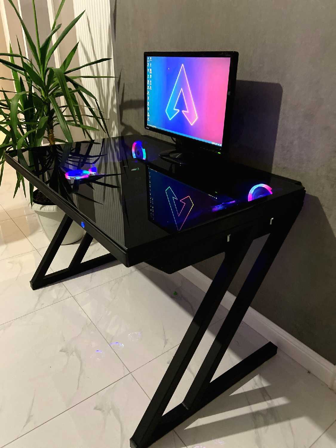 - + Очень качественный стол, полностью металлический, стекло толстое и тяжёлое, выглядит надёжно, места под комплектующие много. Больше всего понравилось как упаковали, очень постарались в этом плане, стол доехал без единых царапин и потёртостей.