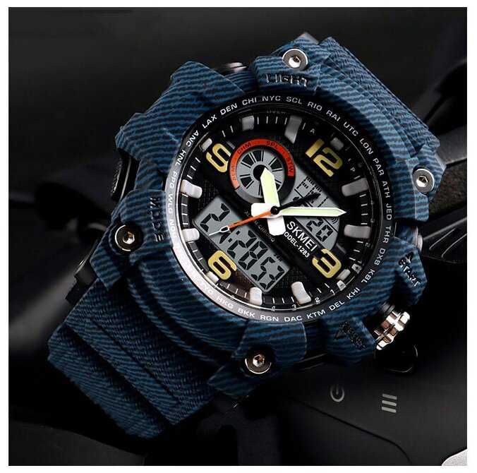 - - Размер. Они громадные. Циферблат не светится в темноте, минус. Инструкции на русском нет. Нет времени на цифровых часах по 24 часа, только 12-часовой формат.