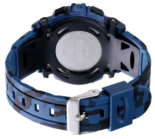 8 отзывов пользователей o SKMEI Скмей 1548, детские, секундомер, подсветка, будильник Dark Blue Camouflage