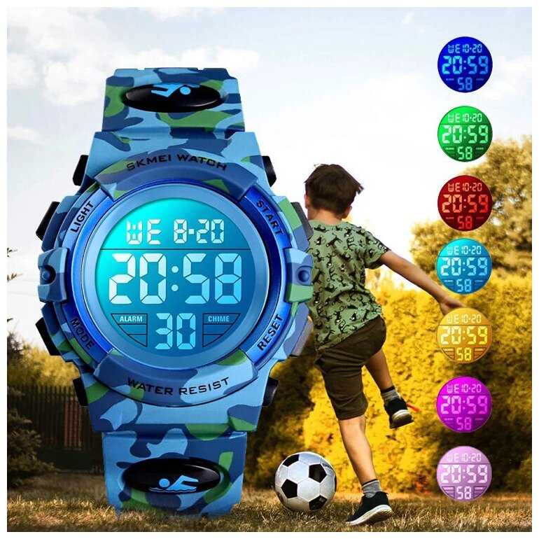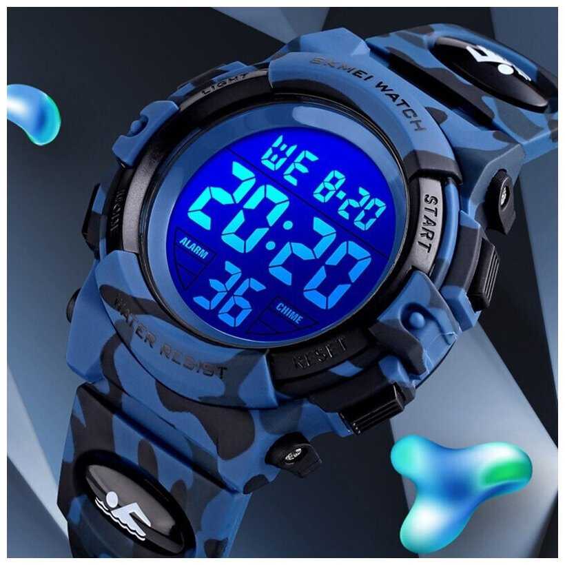Лучшие цены сегодня на SKMEI Скмей 1548, детские, секундомер, подсветка, будильник Dark Blue Camouflage