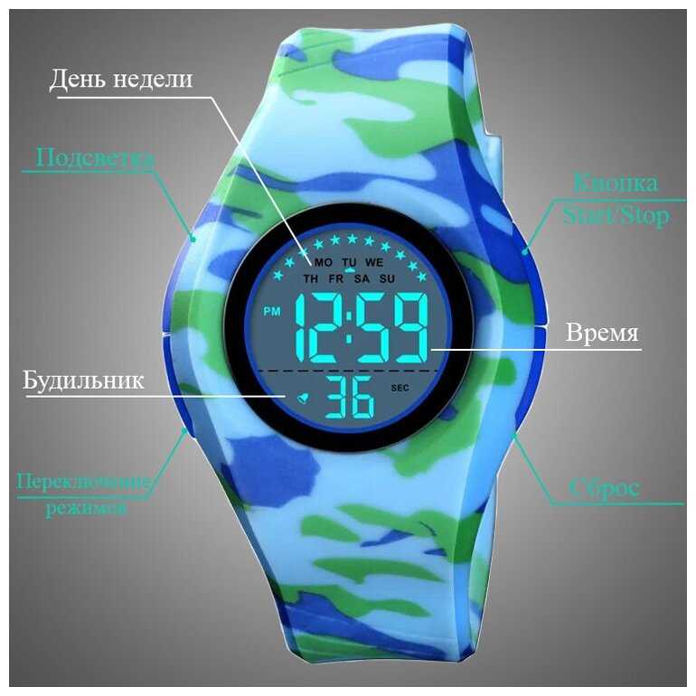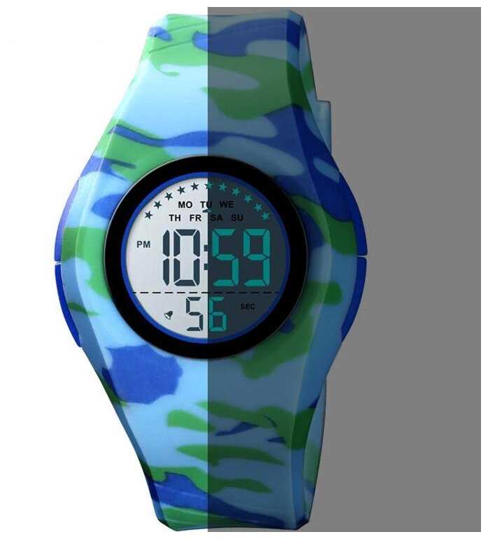 7 отзывов пользователей o SKMEI Скмей 1556, детские, секундомер, подсветка Camouflage Blue