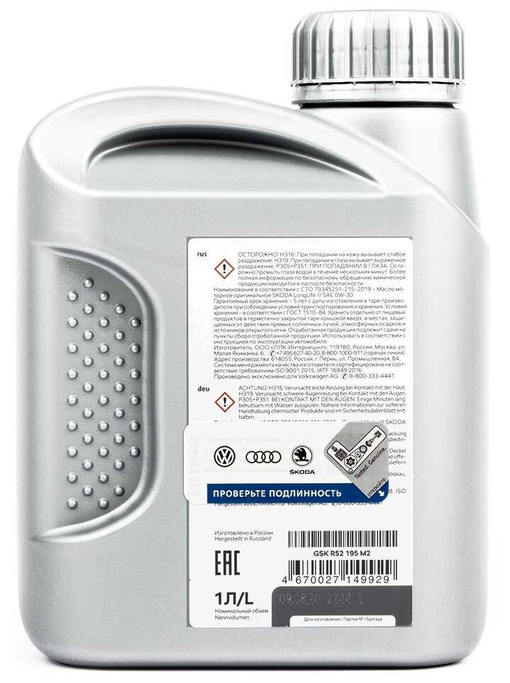 - + Хорошее масло, по канистре замечаний нет, код проверки прошёл успешно.