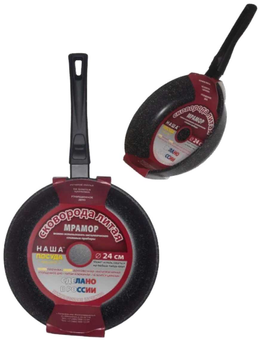 5.8/10 балловНаша посуда Сковорода литая Мрамор со съёмной ручкой, 24 см "Наша Посуда"