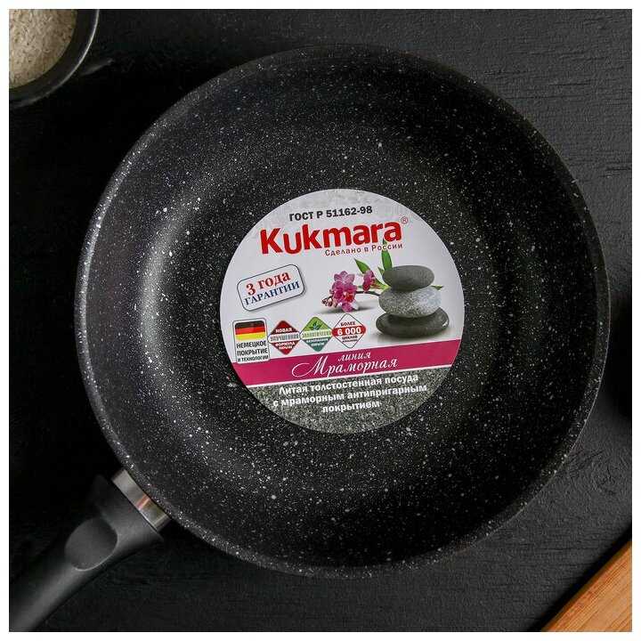 Kukmara Сковорода, d=26 см, стеклянная крышка, антипригарное покрытие, цвет тёмный мрамор