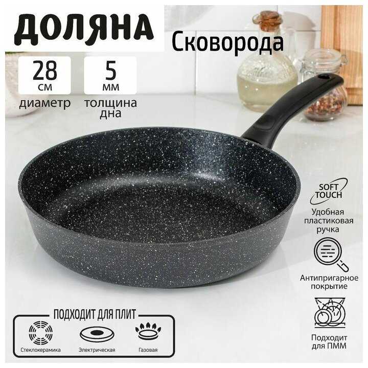 Доляна «Элит», d=28 см, пластиковая ручка, антипригарное покрытие, цвет серый