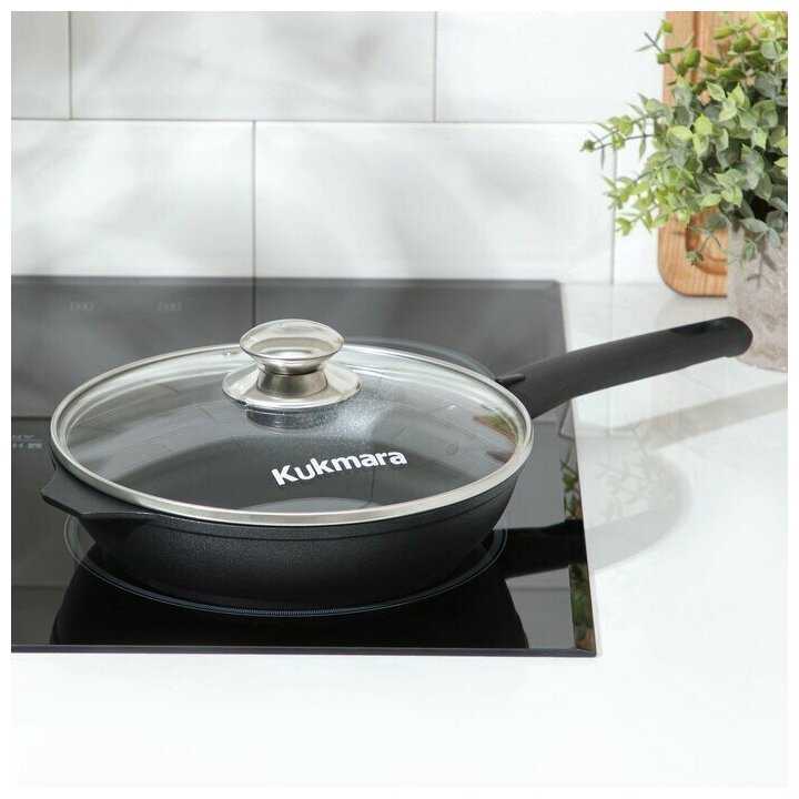 Kukmara Сковорода «Традиция», d=22 см, стеклянная крышка, съёмная ручка, антипригарное покрытие, цвет чёрный