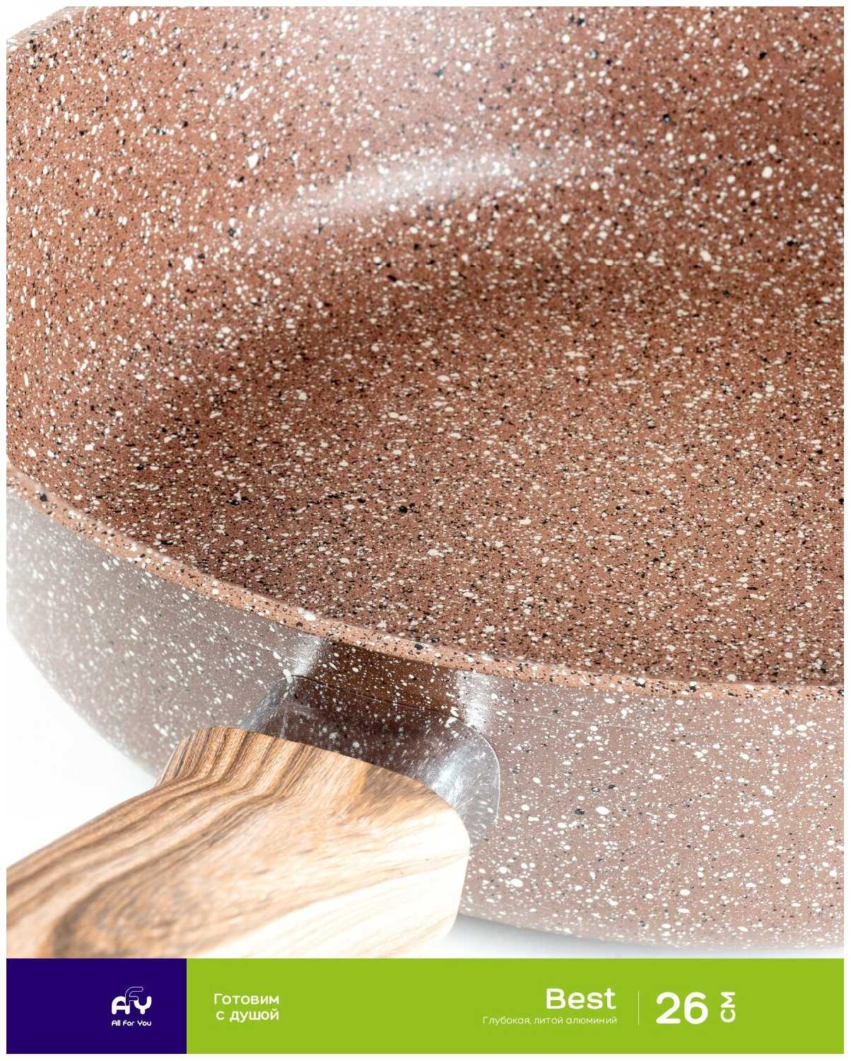 All For You Сковорода глубокая 26 см со съёмной ручкой. Литой алюминий, антипригарное покрытие, AFY Best.