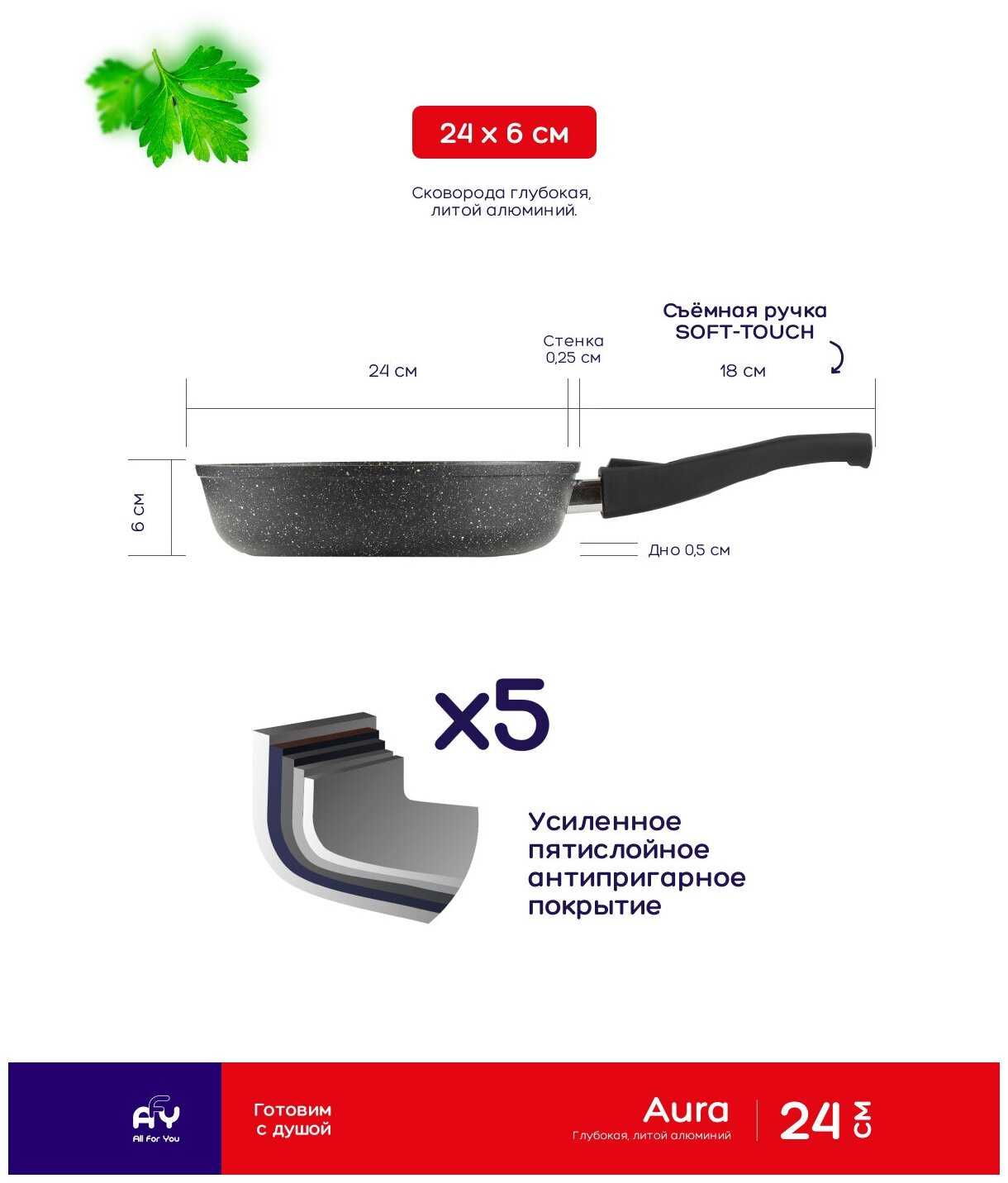 All For You Сковорода AFY Aura, 24 см, глубокая, съёмная ручка, литой алюминий, антипригарное покрытие