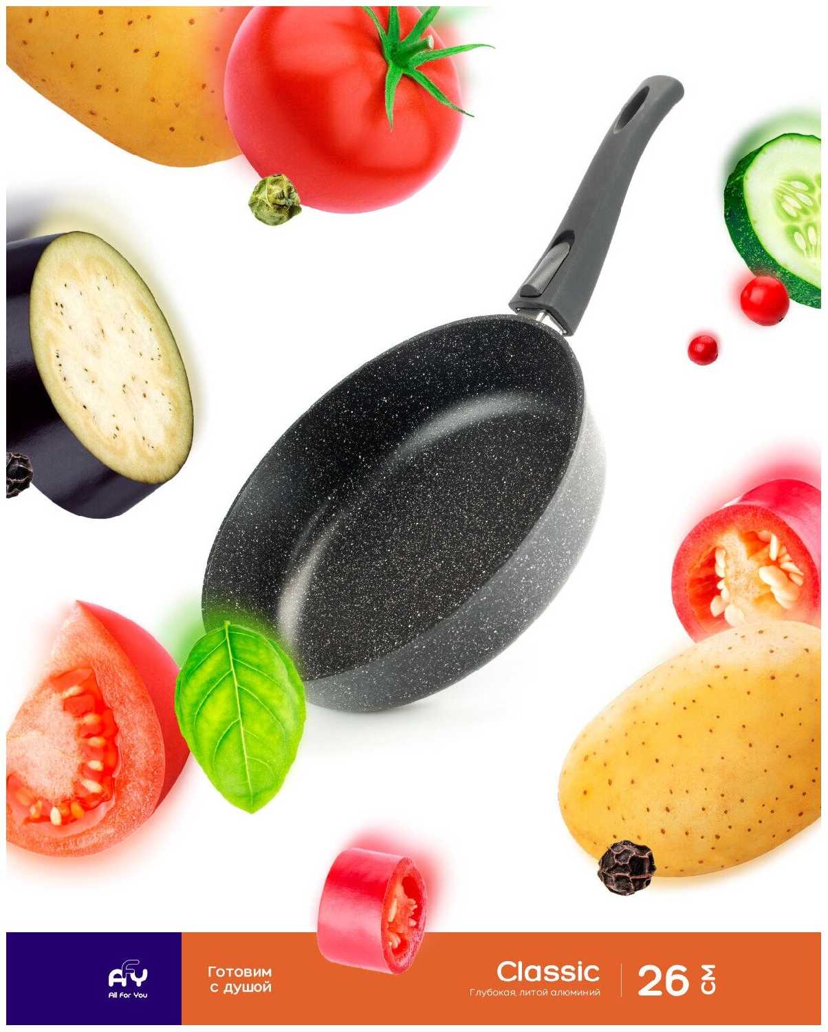 All For You Сковорода AFY серия Classic, 26 см, глубокая, съёмная ручка, литой алюминий, антипригарное покрытие, индукция