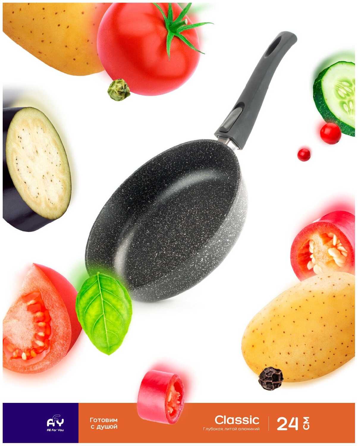 All For You Сковорода AFY серия Classic, 24 см, глубокая, съёмная ручка, литой алюминий, индукция. Антипригарное покрытие.
