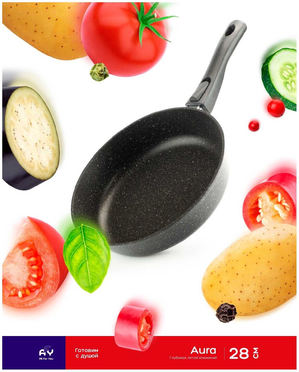 All For You Сковорода AFY Aura, 28 см, глубокая, съёмная ручка, литой алюминий с антипригарным покрытием