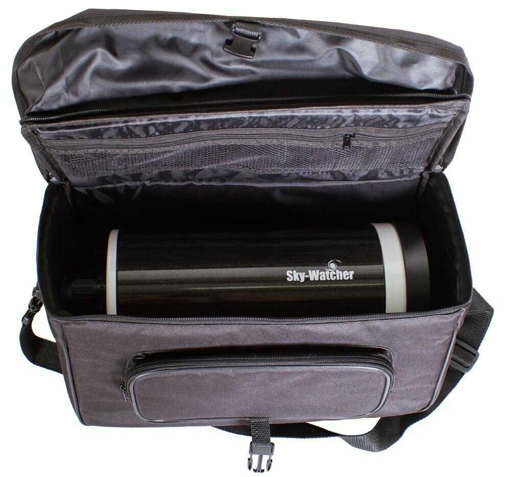скажу даже больше, комплектная сумка имеет огромный запас по вместимости, туда можно запихать не только сам телескоп, но и фотик, устойчивую треногу и кучу фильтров и линз. либо можно этот телескоп засунуть в рюкзак и поехать куда угодно без этой сумки