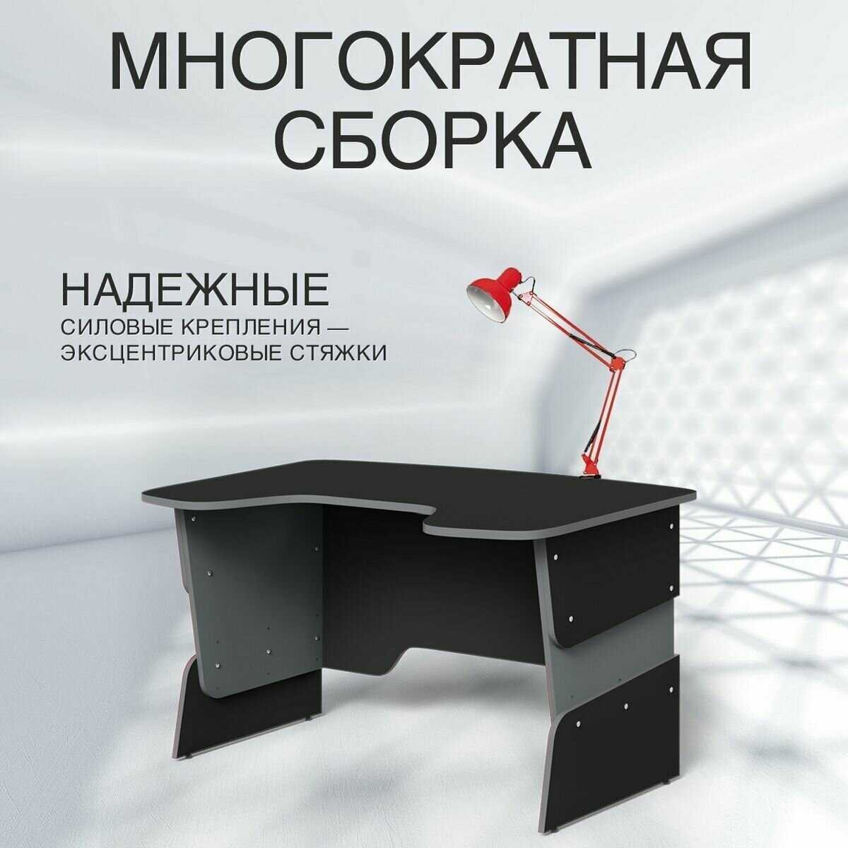 При толщине столешницы 22 мм конструкция стабильно держит два 27-дюймовых монитора, акустику и периферию. Однако центральная зона возле выреза склонна к прогибу при давлении локтями свыше 5 кг. Для крепления мониторных кронштейнов лучше выбирать боковые «уши» — там жёсткость выше. Системный блок рекомендуется ставить на пол или отдельную подставку.
