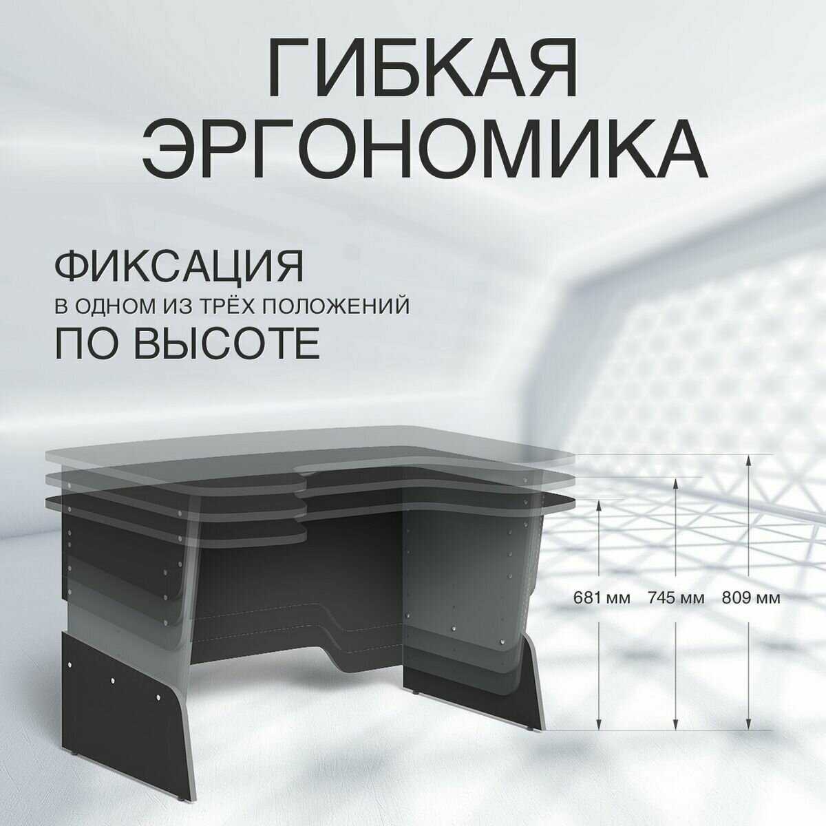При длине 138 см и ширине 60 см стол занимает значительную площадь, создавая простор для двух мониторов и аксессуаров, но не подходит для комнат менее 10 м². Расстояние до монитора сокращается на 8–12 см из-за выреза, что критично для людей с нарушениями зрения. Рекомендуется использовать кресло с регулируемой глубиной сиденья. -