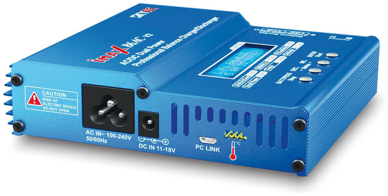 | Дополнительная информация : | поддерживаемые аккумуляторы: Ni-XX/1.2 - 18 В (1-15S), Li-PO/3.7 - 22.2 В (1-6S), Li-Ion/3.6 - 21.6 В (1-6S), Li-Fe/3.3 - 19.8 В (1-6S), Pb/2 - 20 В (1-10S) |